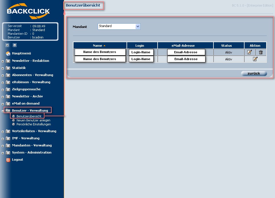 PLEASE NOTE: It is not possible to erase the administrator, and you will not find a -button for this user. The administrator may only be edited by clicking on the -symbol.